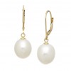 Drop shape freshwater pearls in 10-10.5mm dangle from 14KY leverback earring findings.