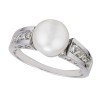 14KW Akoya Cultured Pearl Ring- 8mm-.20 ct tw