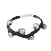 Black Tahitian Circle Pearls 10-11mm on Leather Bracelet- 7.5"-Silver