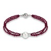 Garnet Bracelet with Freshwater Pearl (10mm) strung with Silver Findings- 7.5"
