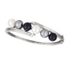 Silver bangle with Freshwater Button Pearl Bangle Bracelet- White, Grey and Black-925