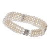 14KW Freshwater Three Row Pearl Bracelet .05 ct tw