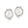 White Button & White Topaz Earring- 9-9.5mm- Sterling Silver