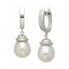 Drop shape freshwater pearls in 9-9.5mm size set in silver as a hoop dangle earring.