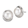 White Button Pearl & White Topaz Earring- 9-9.5mm- Silver