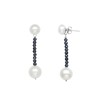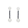 Black Spinel earring with white Freshwater Pearls- 8mm button+ 10mm Near round- Sterling Silver