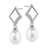 FE6609W- 14KW Freshwater Pearl Earring- 7.5-8mm- .05 ct tw