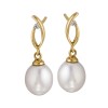 14KY Freshwater Drop Shape Pearl Earring- 7.5-8mm- .03ct tw