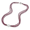 Three Row Garnet Necklace with White Freshwater Pearl 10mm- 18"- Sterling Silver