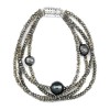 Black Tahitian Pearls 8-11mm & Smoky Topaz Bracelet- 7.5"-Silver