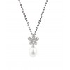 White Freshwater Pearl Necklace- White Topaz & Silver Chain